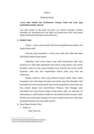 Kaidah2 Fiqh Al Yaqini Yuzalu Bi Syak Dan Kebolehan Dalam Darurat
